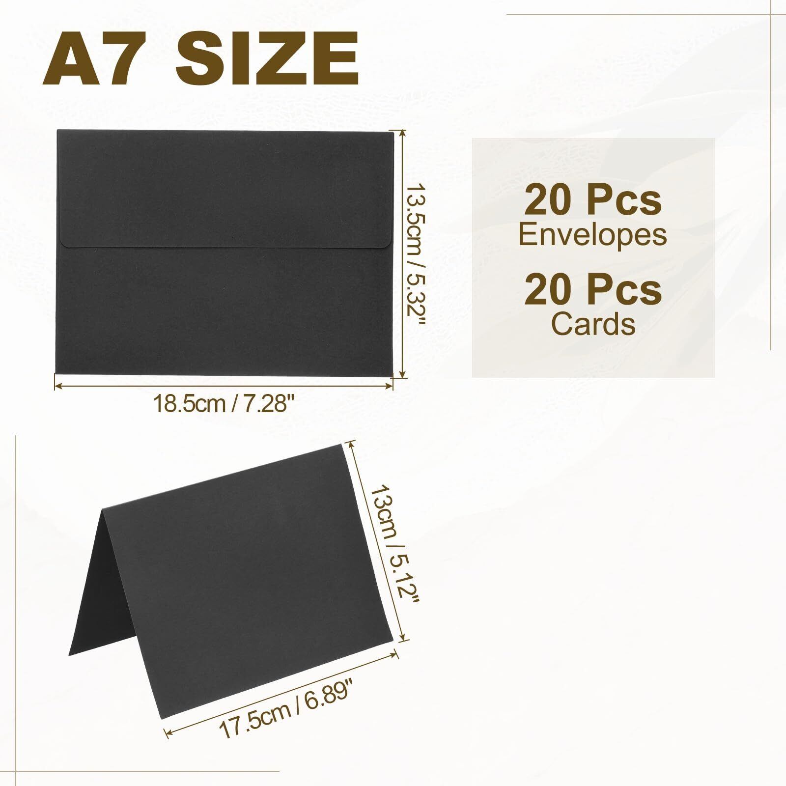 PATIKIL 封筒 レターセット 20枚 18.5x13.5cm 洋封筒 空白カード シール付き A7紙 スタイリッシュ 挨拶状 招待状 お祝い クリスマス 誕生日 お釣りカード 黒