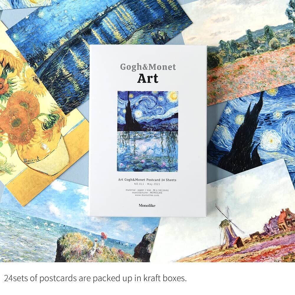 モノライク アート ゴッホ & モネ ポストカード Art Gogh & Monet Postcard - 24セットの感性的なデザインはがきデイリーはがき、雰囲気のあるきれいなはがき長方形はがき、デザイン文句