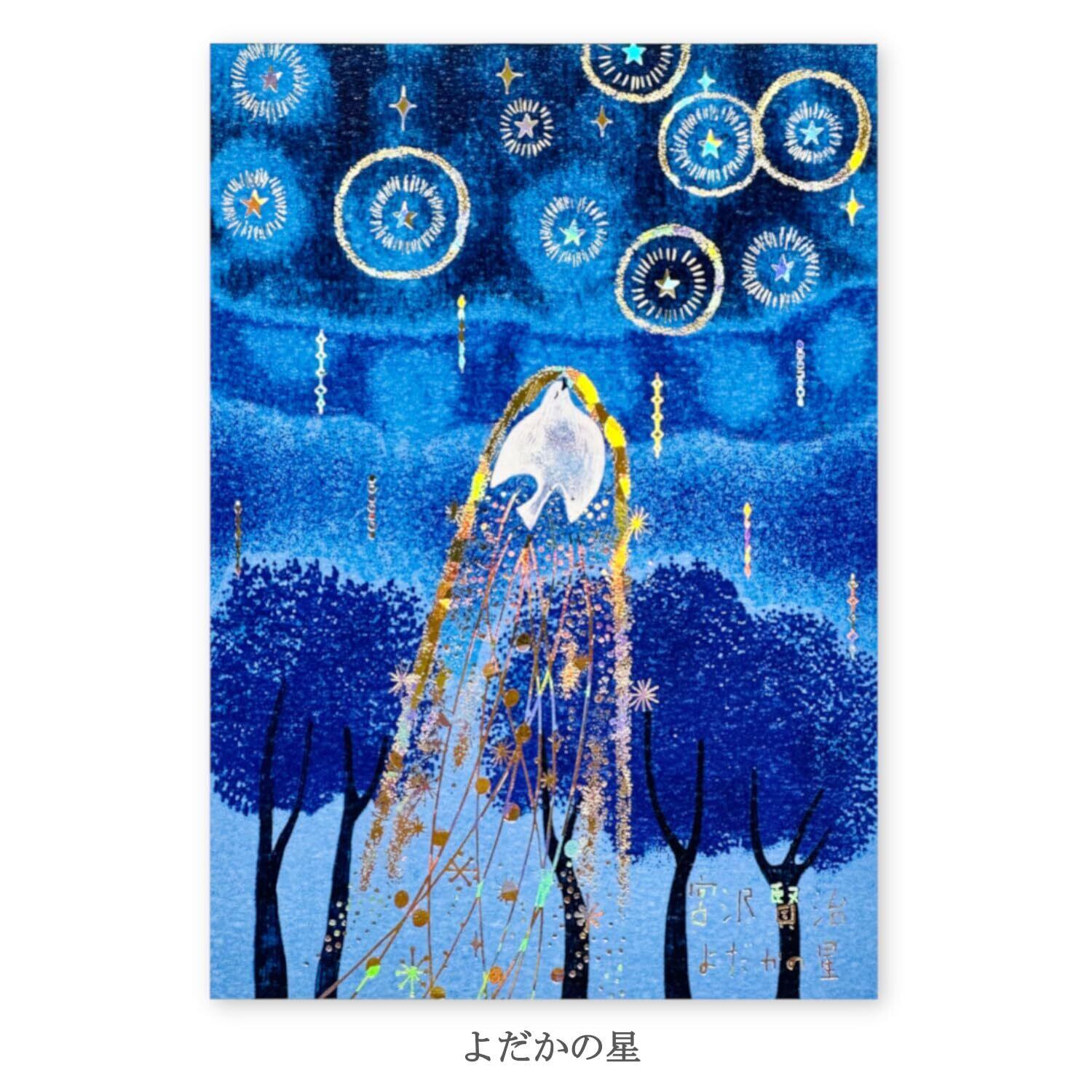 雑貨デザイナー×絵本作家Shinzi Katoh(シンジカトウ)が宮沢賢治作品の世界観を描いた宮沢賢治幻燈館シリーズ。ゴールドホログラムを施した高級感のある箔押しポストカードです