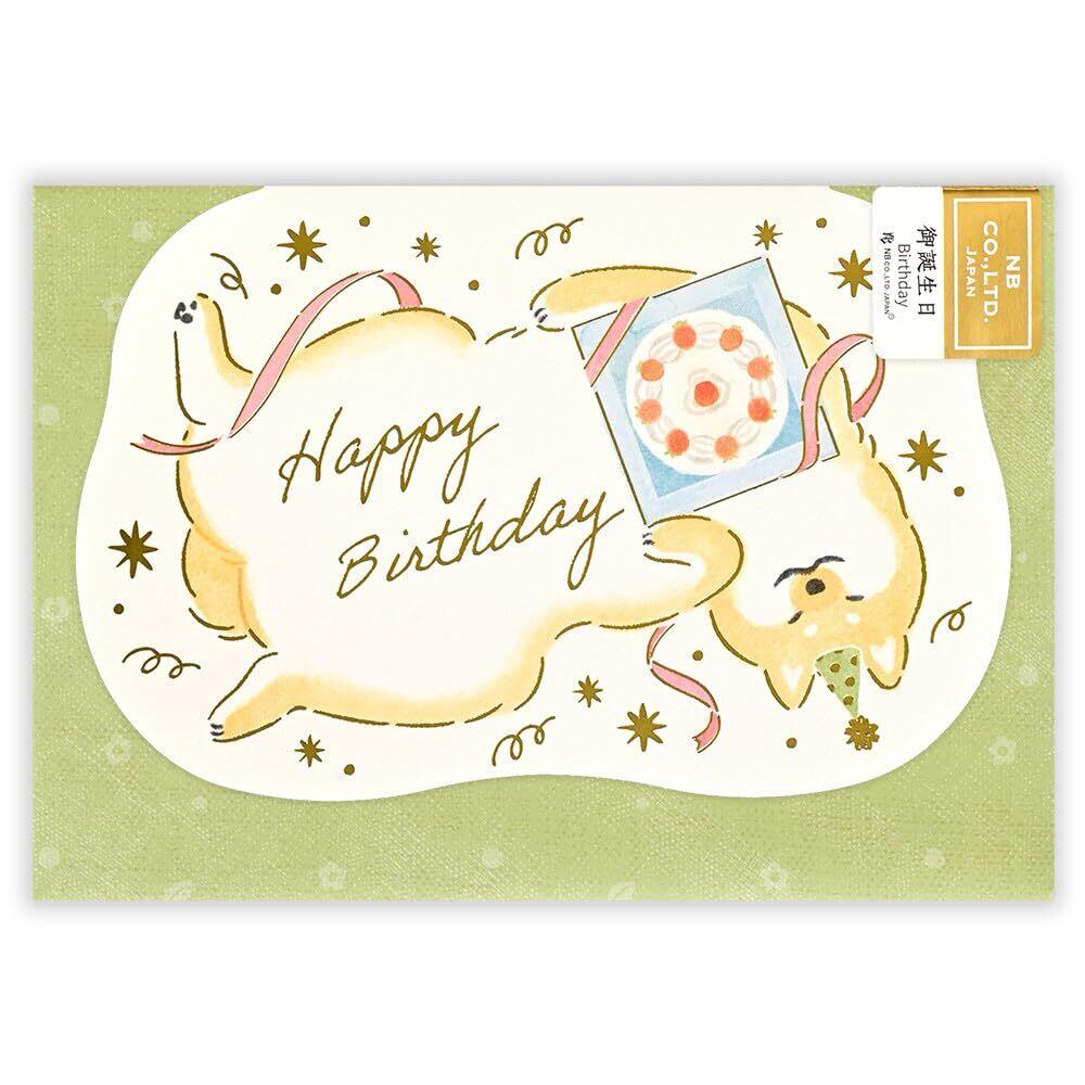 【数量限定】【エヌビー社】バースデーカード ふんわか 誕生日 しばいぬ <洋形2号封筒> | 金箔 ダイカット 動物 アニマル 柴犬 しばけん 黄緑 イエローグリーン ペット