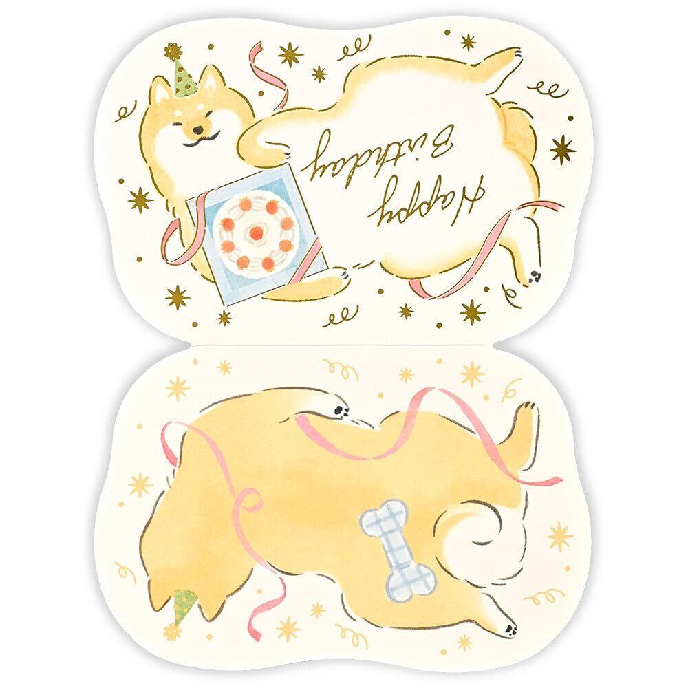 動物がほっこりかわいい、気軽に贈れるグリーティングカード。表紙にはきらりと輝く金箔押し加工を施しています。カードは動物のやわらかいシルエットで型抜きされており、優しいタッチのイラストが可愛さと癒しを届けてくれます。柴犬が好きな方のバースデーカードにおすすめです。
