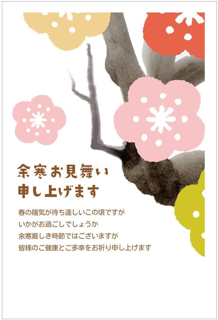 余寒見舞いハガキ 5枚 切手付き官製はがき アルファプリントサービス〈YK207 梅〉