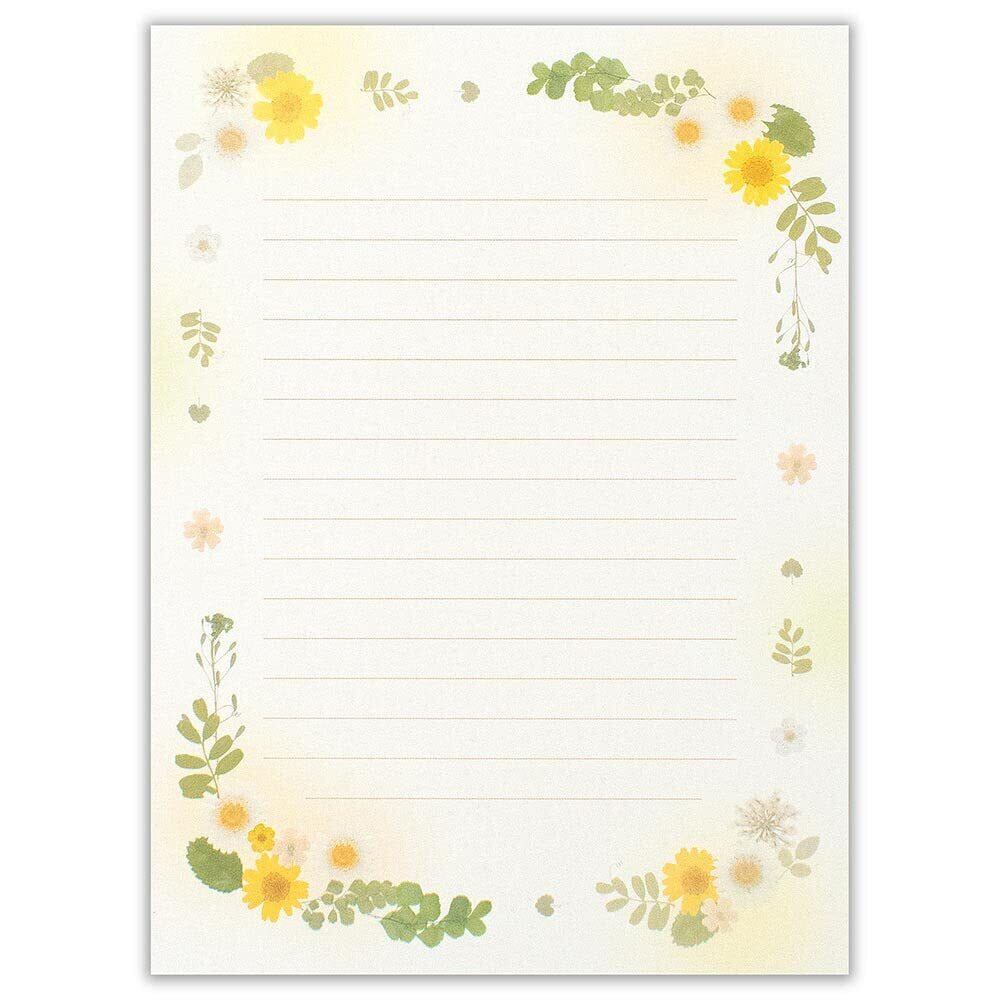 【ご使用シーン】通年お使いいただける花柄で、押し花の絵柄がお手紙を彩ります。