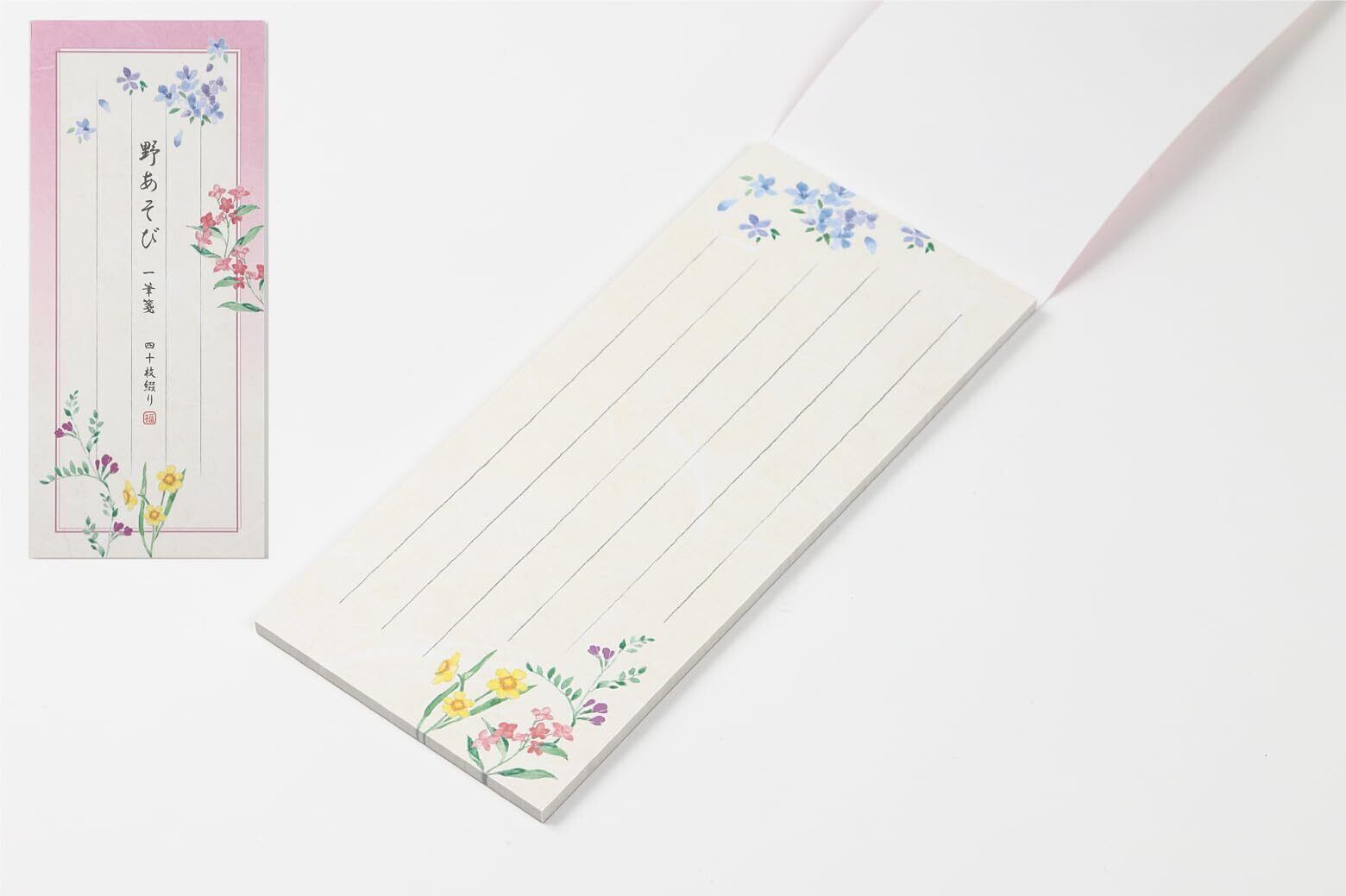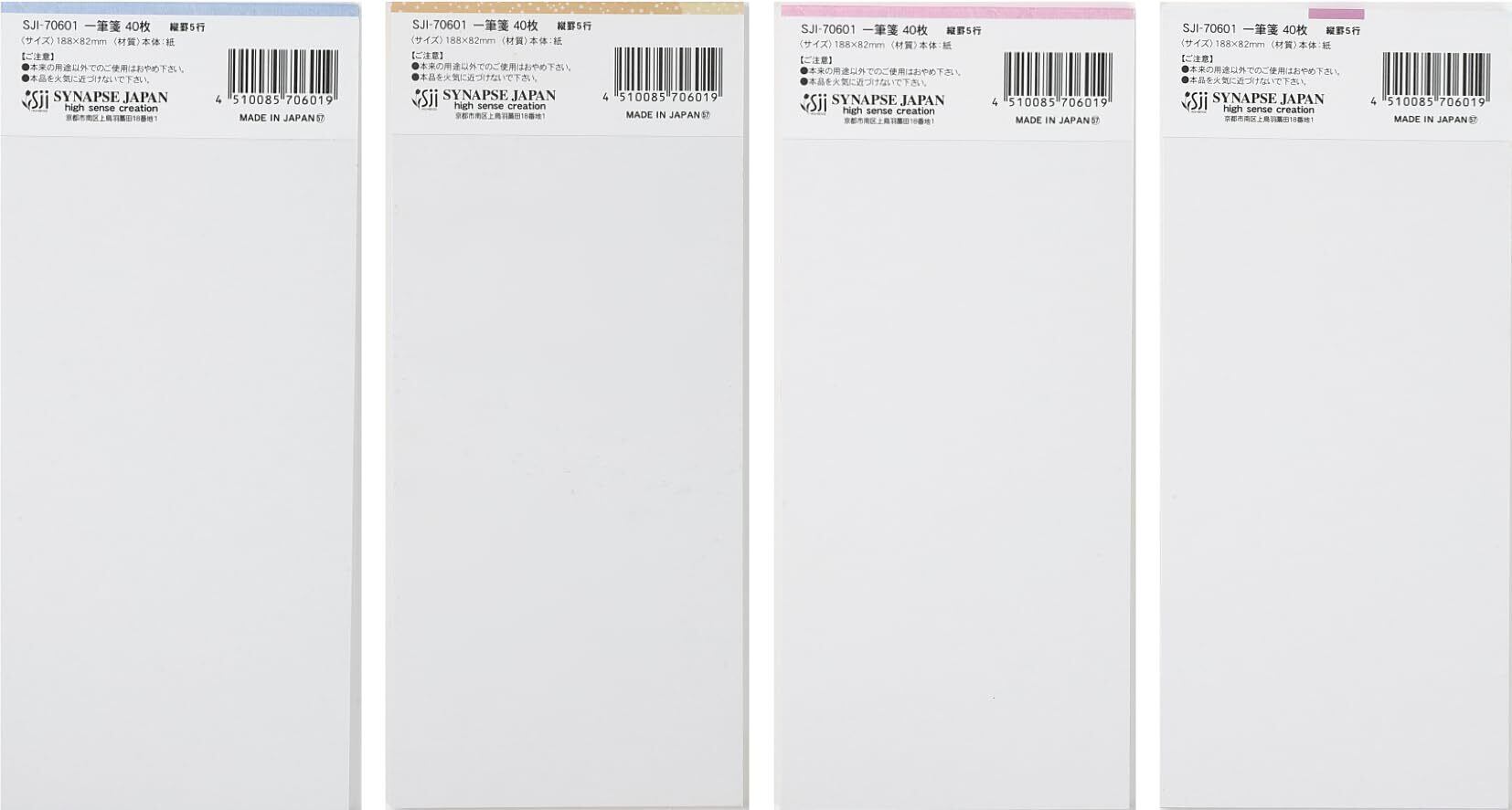 【4柄セット】シナップス 一筆箋 40枚入 便箋 日本製 和紙 縦書き 花柄 花のたより てまりうた 野あそび 花うさぎ 4510085706019, 4色アソート
