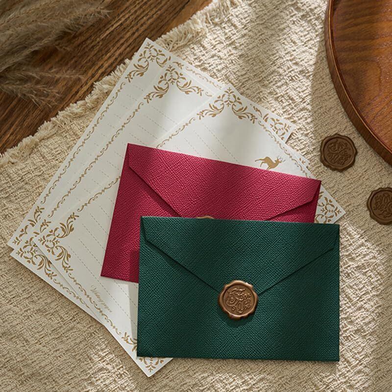 上品なワインレッド色の封筒とエレガントな便箋のセットで、特別な瞬間を演出します。高級感のあるゴールドのシーリングワックスが付属し、クラシカルで洗練された印象を与えます。結婚式の招待状、母の日のお手紙、クリスマスカード、誕生日メッセージ、卒業祝いなど、大切な場面で活用できます。便箋には優美な金色の装飾が施され、心のこもったメッセージを書くのにぴったりです。3枚セットなので、複数の方へのお手紙や、大切な方への想いを何度も書き直すことができます。手書きの温かみと、伝統的な封蝋の優雅さが調和した、特別なレターセットです。大切な人への想いを伝える手紙に、より一層の格調と風格を添えます。