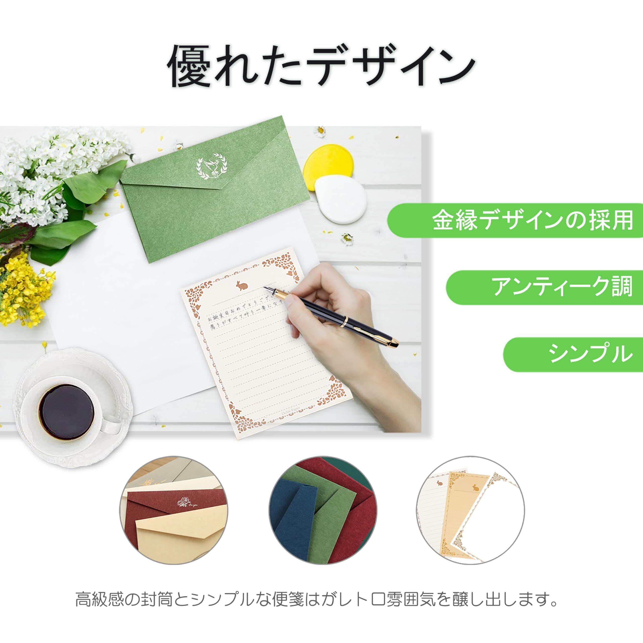 【優れたデザイン】 シンプルなアンティーク調のデザインなので、美しくてエレガントな手紙を受け取る側も、手紙を送る方も気分が上がるレターセットです。シンプルかつ高級感があるアンティーク仕様のデザインであり、二つ折りにもできるフォールディングカードです。