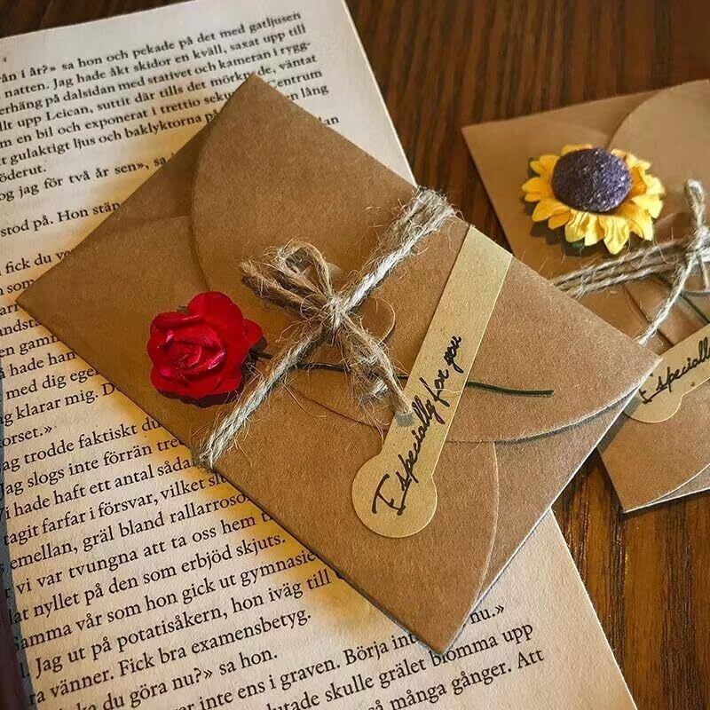 aninako 【封筒10枚+便箋10枚】 手紙セット レターセット 手紙 誕生日 彼女 便箋 おしゃれ プロポーズ アンティーク調 シンプル 箔押し 便箋と封筒 誕生日 招待状 結婚式 お祝い手紙 挨拶状 お礼状用 (干し花封筒10枚+便箋10枚)