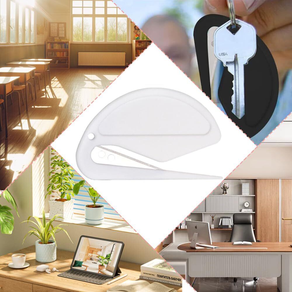 高品質プラスチック材料を用いて本体を作り、耐久性があり、変形しにくく、耐摩耗性があり、刃は高品質ステンレス製で、繰り返し使用すると老化しにくく、破断しにくく、長時間鋭利さを維持し、小型サイズ、長さ7.6 cm、幅4.7 cmで、ポケットやバッグに収納でき、携帯に便利で、4個入り。
