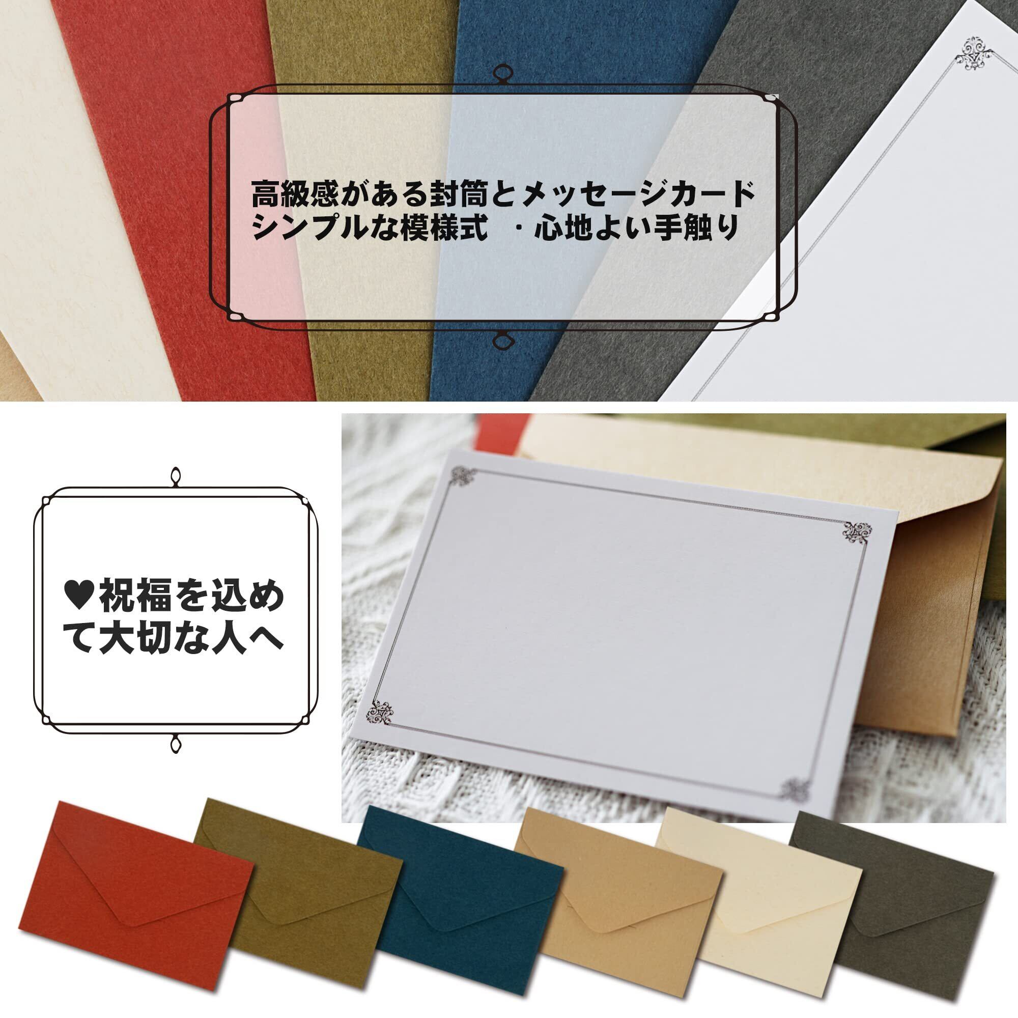 【商品仕様】6色封筒(計24枚):10.5*7cm ミニメッセージカード(計24枚):6.5*9.5cm 4色シーリングワックス シール(計24枚):3cm 合計72枚、超お買い得なセットです!