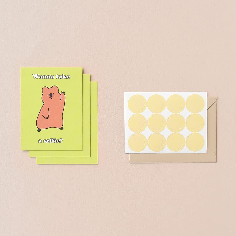 カードサイズ:9.0x6.7(cm)、封筒大:9.7x7.2(cm)、ステッカーの大きさ:直径1.7(cm)
