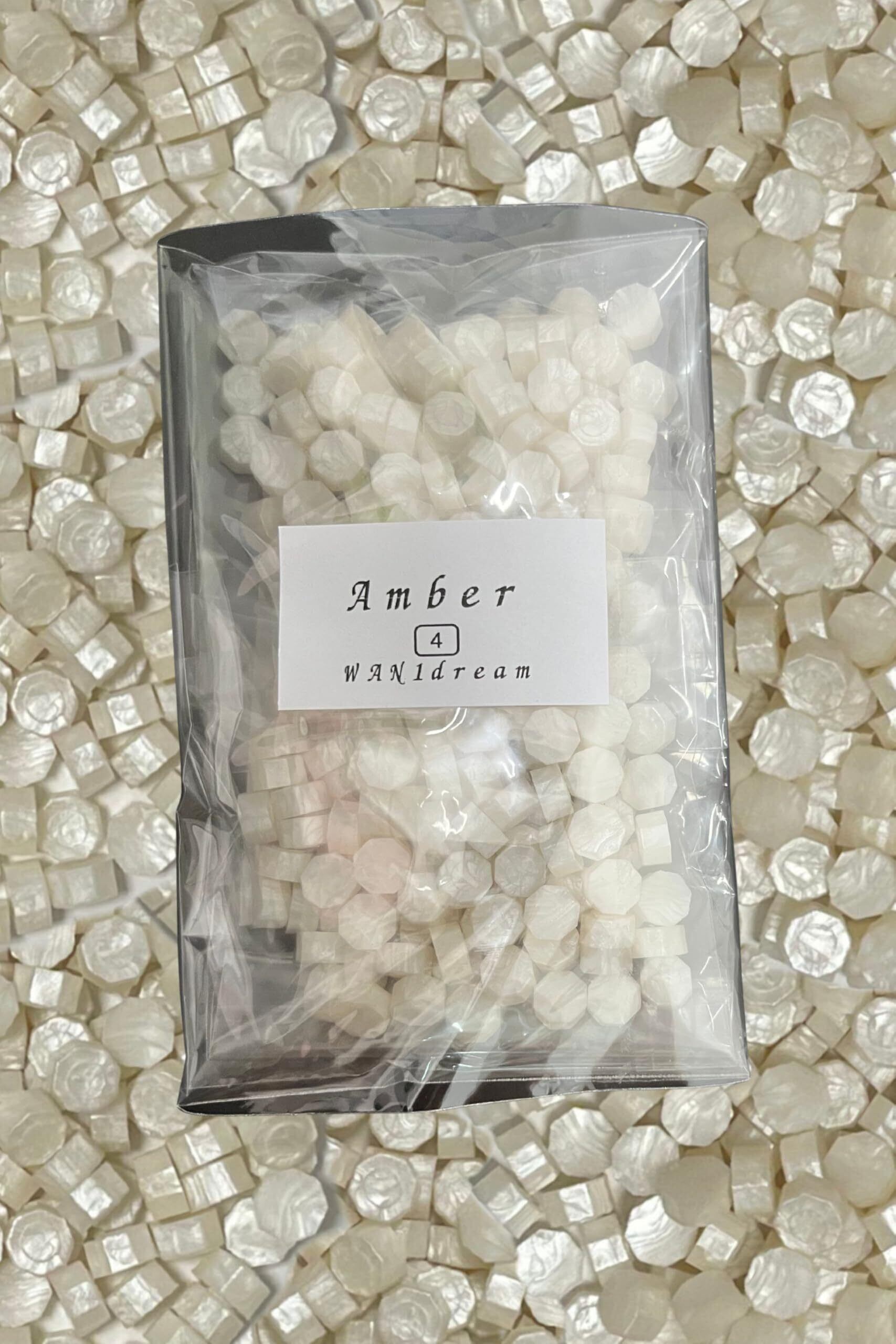 シーリングワックス (大容量)【約200粒 54g】選べる20色セット 宝石風カラー 封蝋 スタンプ用 ワックスビーズ おしゃれ アンティーク風 ハンドメイド ラッピング用 (A-4(白), Amber)