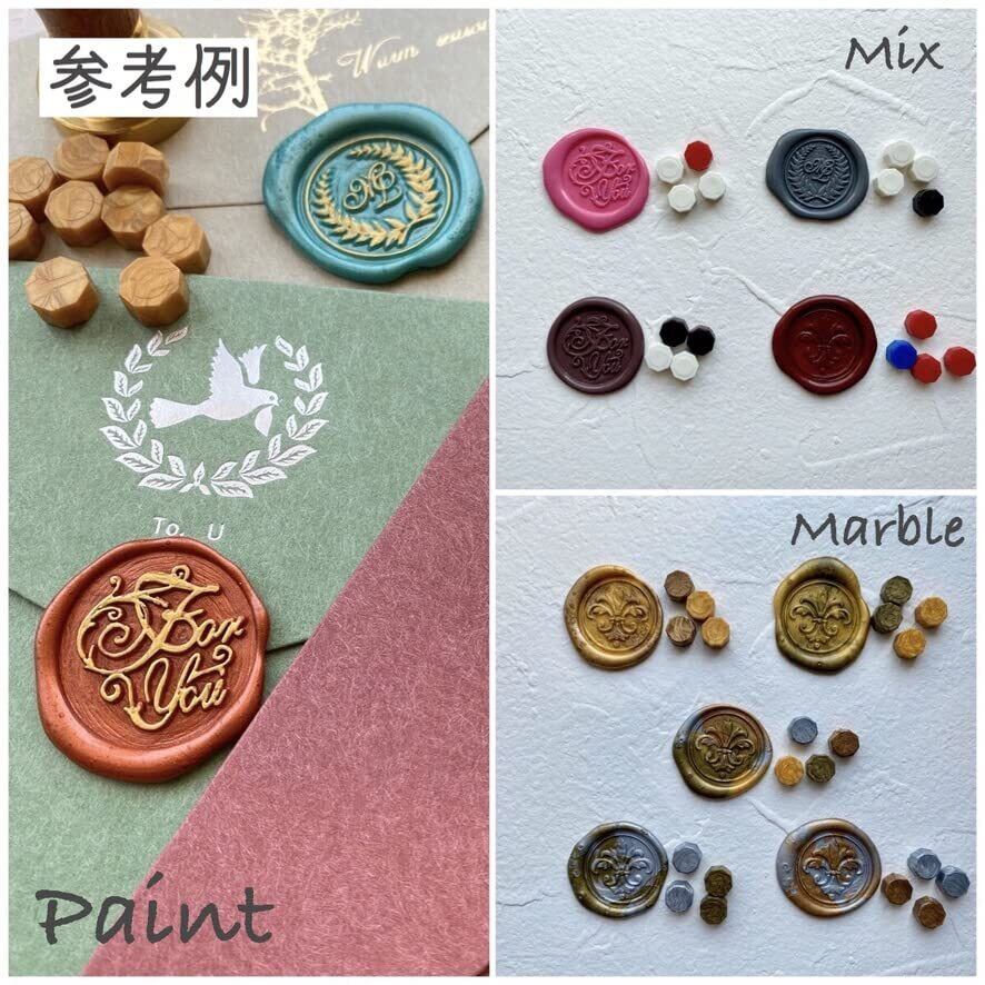 2〜4粒(スタンプのサイズにより異なります)を専用スプーン等に乗せ、ロウソクで炙り溶かして使用します。