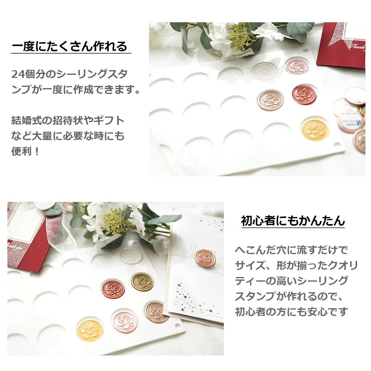 【一度にたくさん作れる】24個分のシーリングスタンプが一度に作成できます。結婚式の招待状やギフトなど、大量に必要な時にも便利!