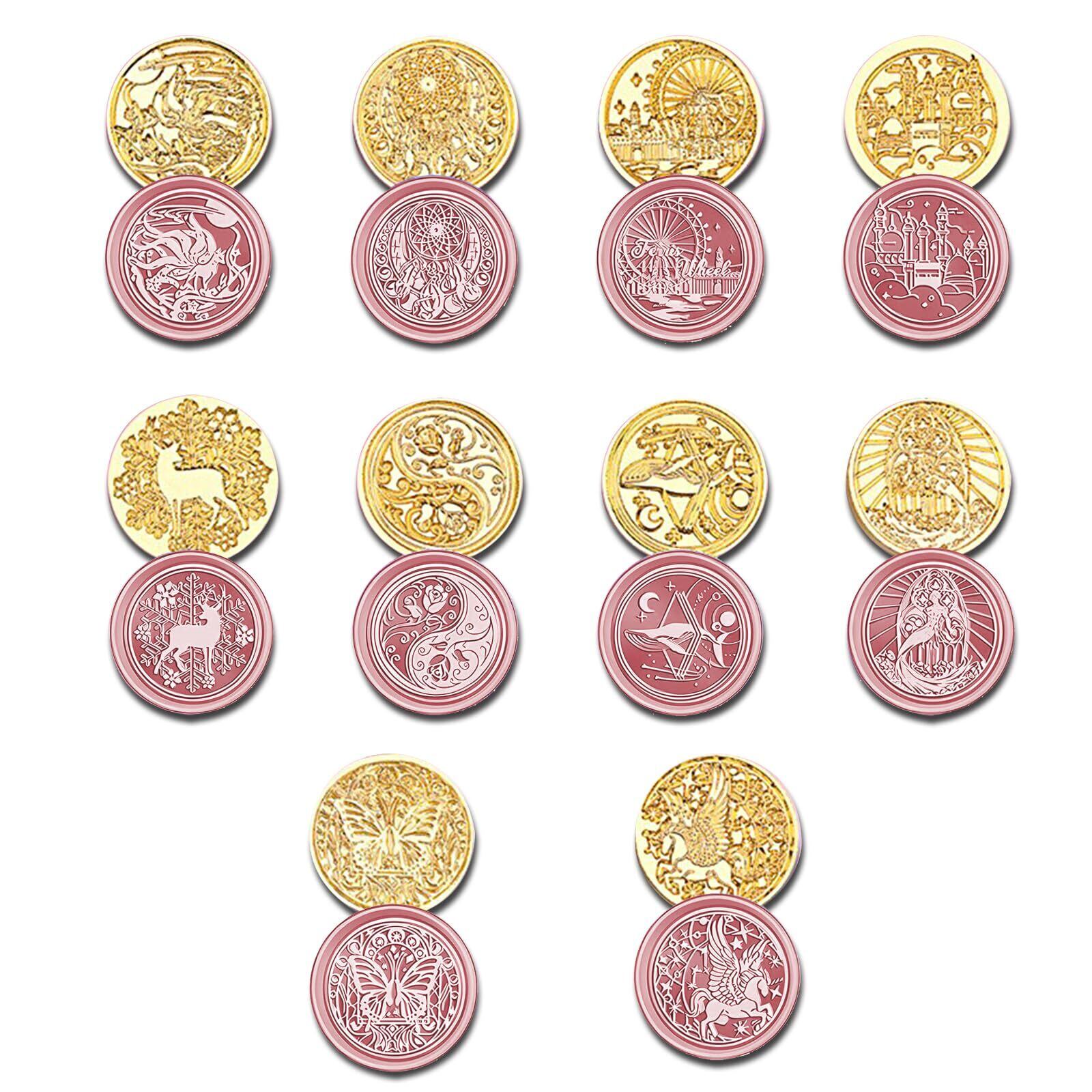 【特価セール】シーリングスタンプ ヘッド 交換 10個セット 印鑑 封筒 専用ヘッド 封蝋シール 洋式 可愛なペット 復古風 DIY 手帳 手紙 メッセージカードの装飾 手紙や封筒のデコレーション (夢のような10枚)