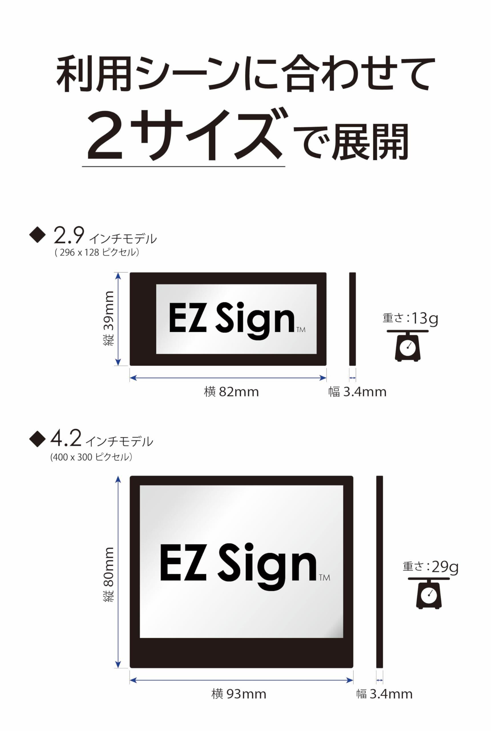 【電池交換不要、スマホをかざすだけで給電されるNFC電子ペーパー ディスプレイ】 SantekのEZ Signは、NFC対応のスマホをかざすだけで表示内容を変更できる電池不要の電子ペーパー ディスプレイです。電池交換や充電が必要なくケーブルでデータを取り込む必要もありません。一度書き込めば電源なしで長期間表示することができ、名札やプライスカードとしても手軽に使えます。紙の印刷や差し替え作業を大幅に削減し、運用コストの削減に貢献します。