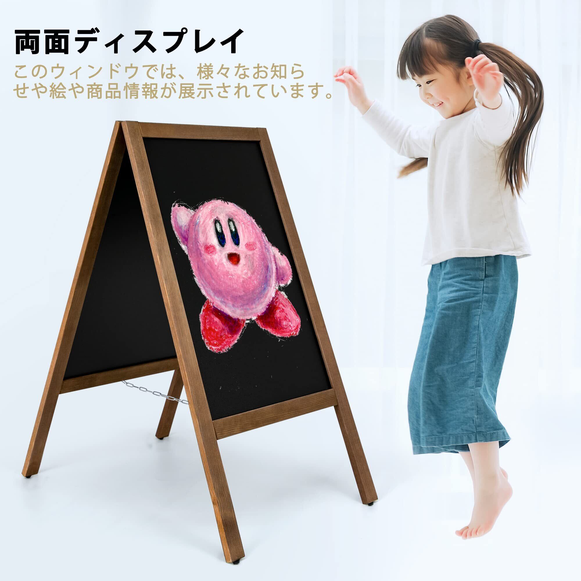 チョーク、水性ペン、ダンボールクレヨンが使えます! 茶色のフレームで飾られたA字型の看板