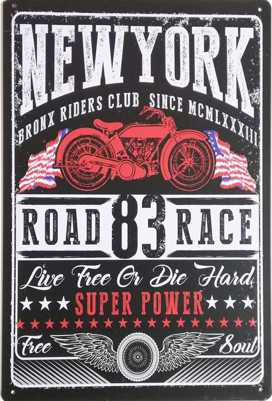 ブリキ製のレトロ看板。アメリカンやハーレー、ヨーロピアンを中心としたバイクショップやバイクをモチーフにしたカフェ、バー、レストランのディスプレイにお勧めです。