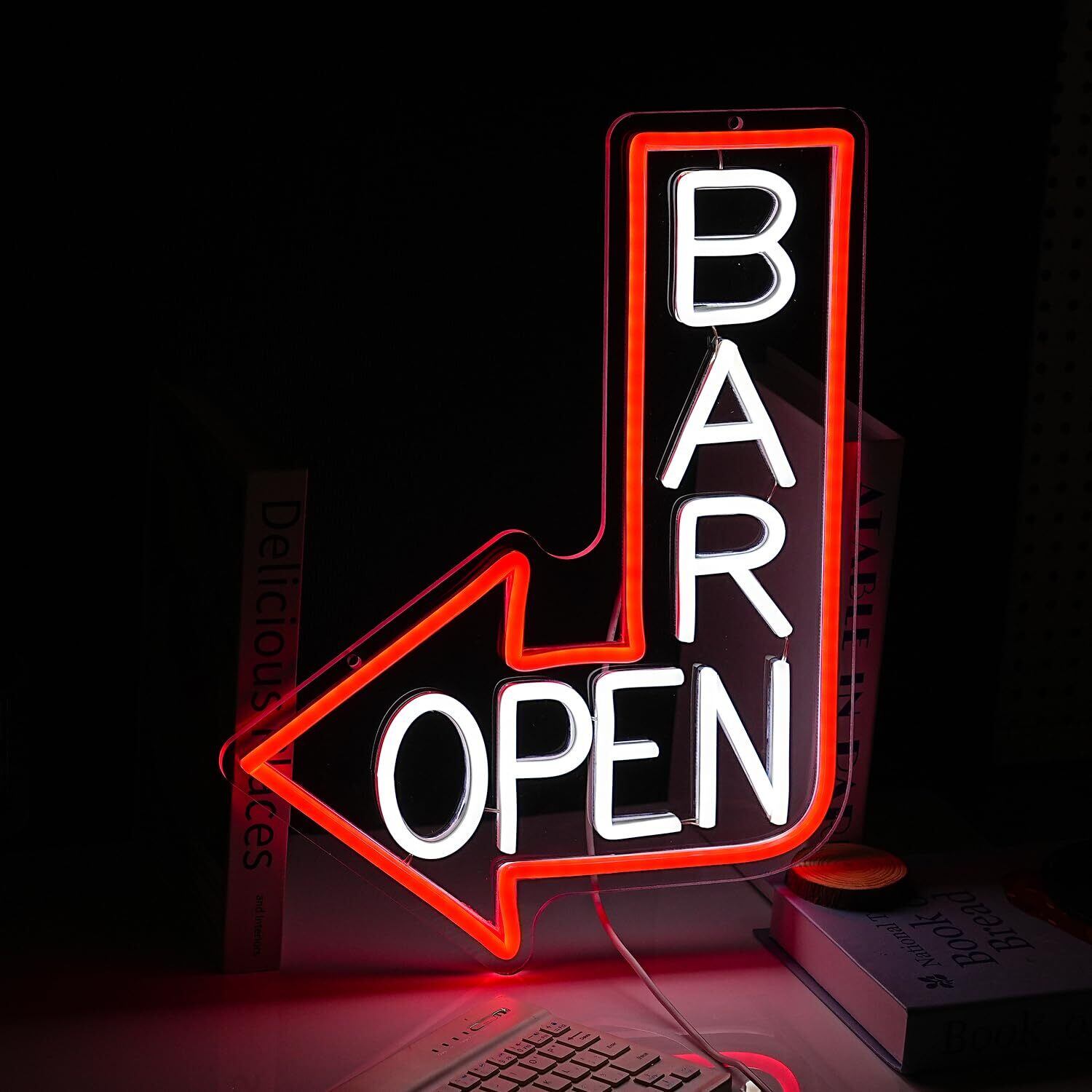 材料:バーネオンライトはLEDフレキシブルストリップライトとアクリルパネルでできており、レーザー切断技術と手動処理を使用して、製品を耐久性、ノイズフリー、柔らかく、さらには軽量、低電圧、安全で環境に優しいものにします。