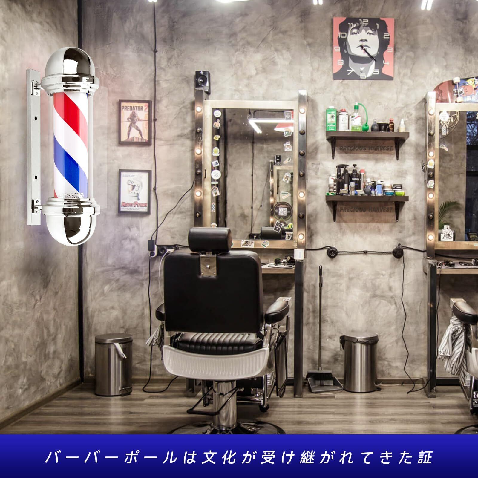 【在庫セール】50cm 壁掛け式赤青白ストライプ床屋回転照明、黒/金/銀カバー選択、LED省エネ光源、クロム加工 (銀色)