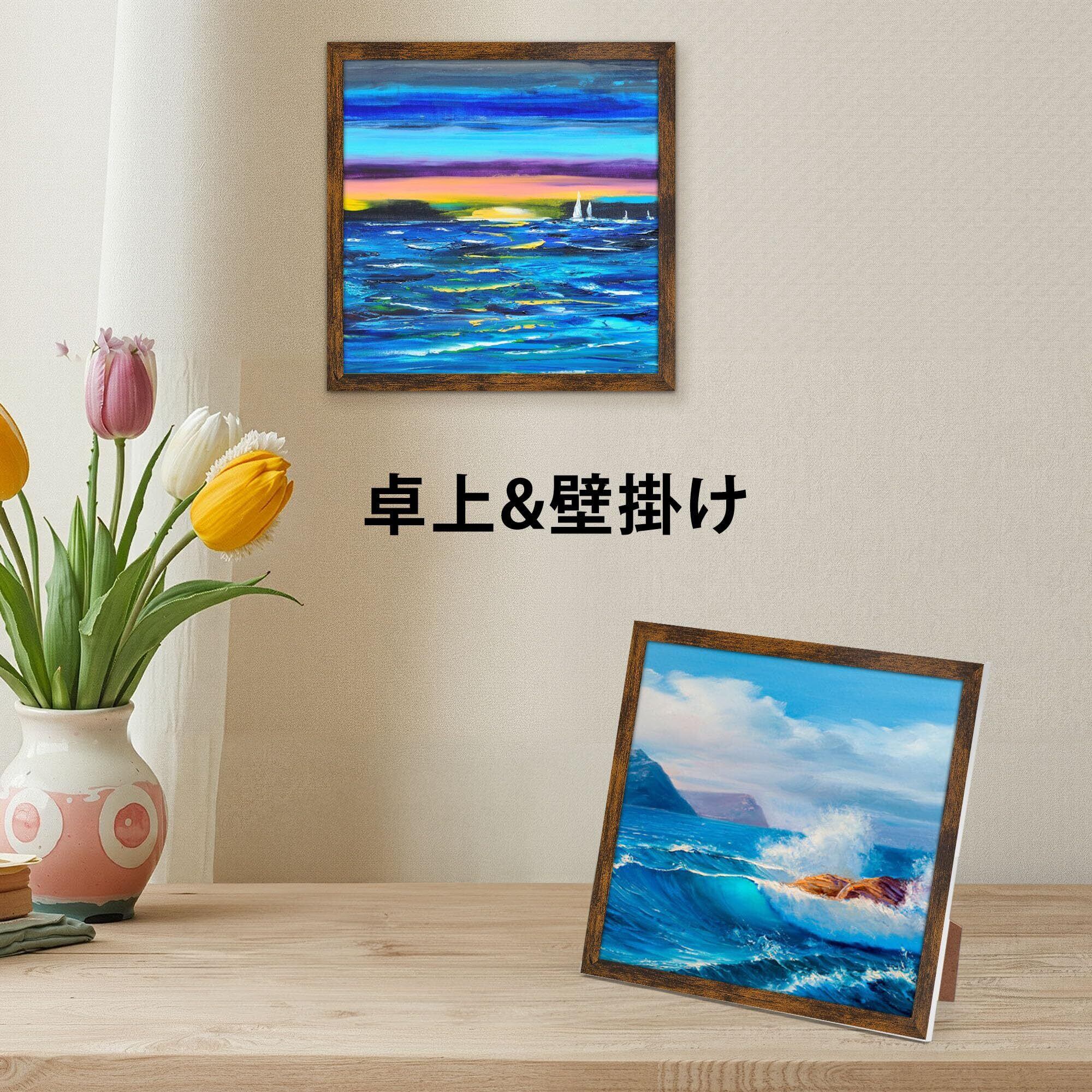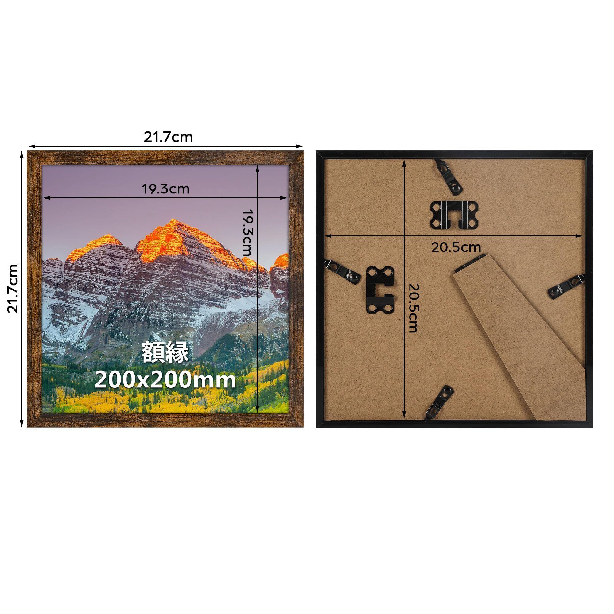 額縁 20角 正方形 フォトフレーム ポスター フレーム 200x200mm 写真 色紙 額 壁掛け 卓上 ブラウン 1枚