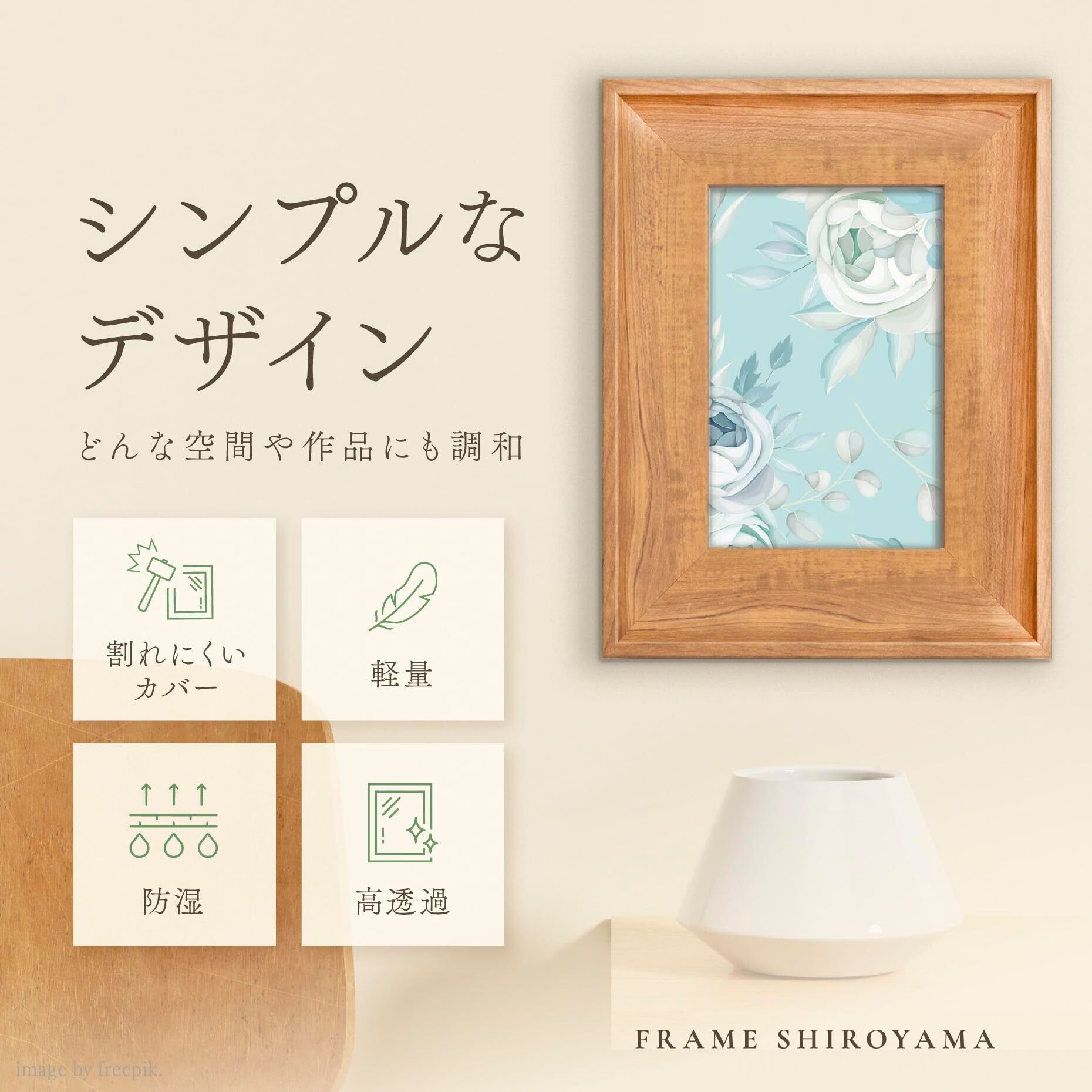 樹脂素材のため、軽量でありながら丈夫な額縁です。さらに防湿性にも優れており、色褪せしにくいのも特徴です。
