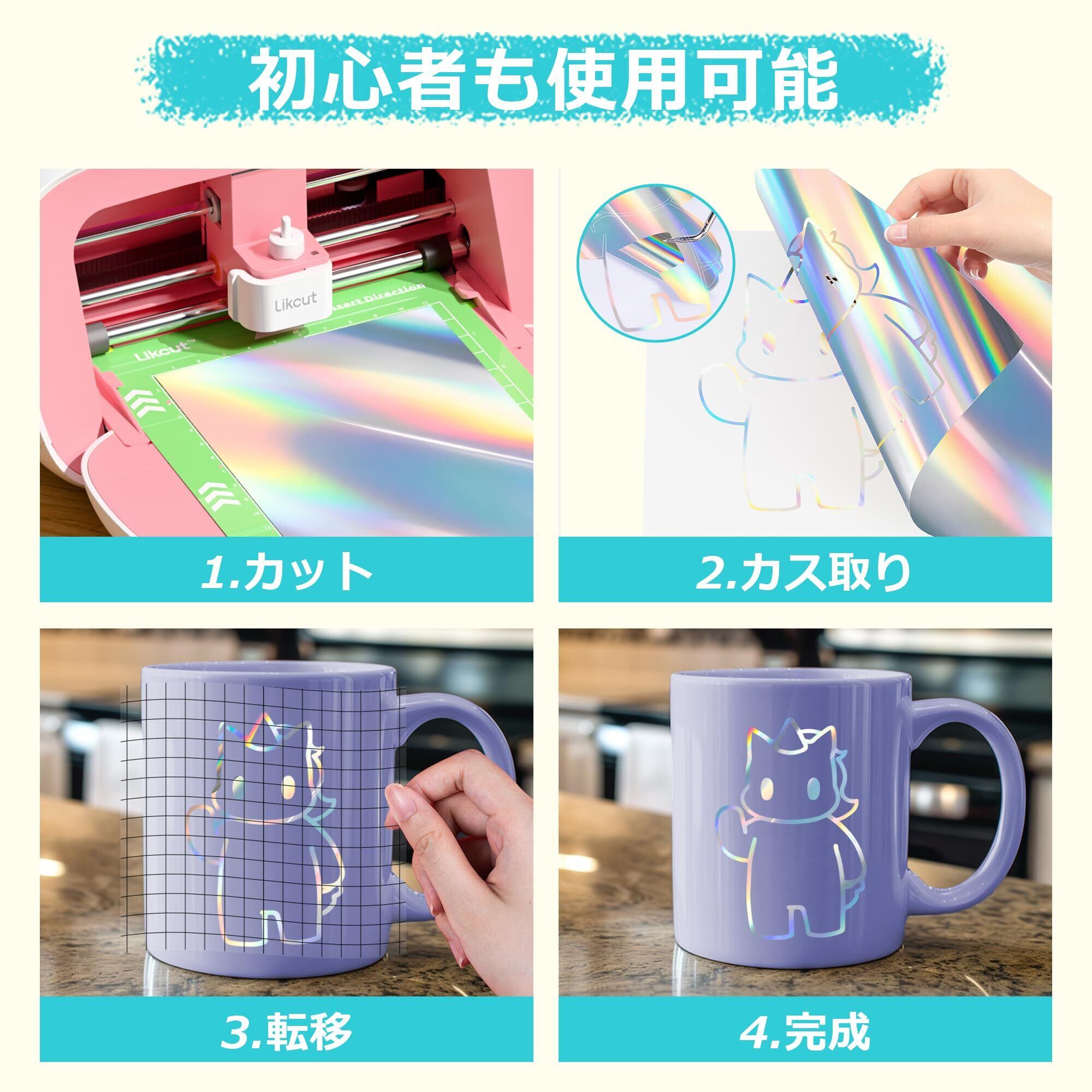 【4ステップ作業】Likcutカッティングシート背面には接着剤が予め塗布されており、以下の4ステップで簡単に作業できます::①カット → ②除草 → ③転写 → ④貼り付け。初心者でも安心してお使いいただけます。