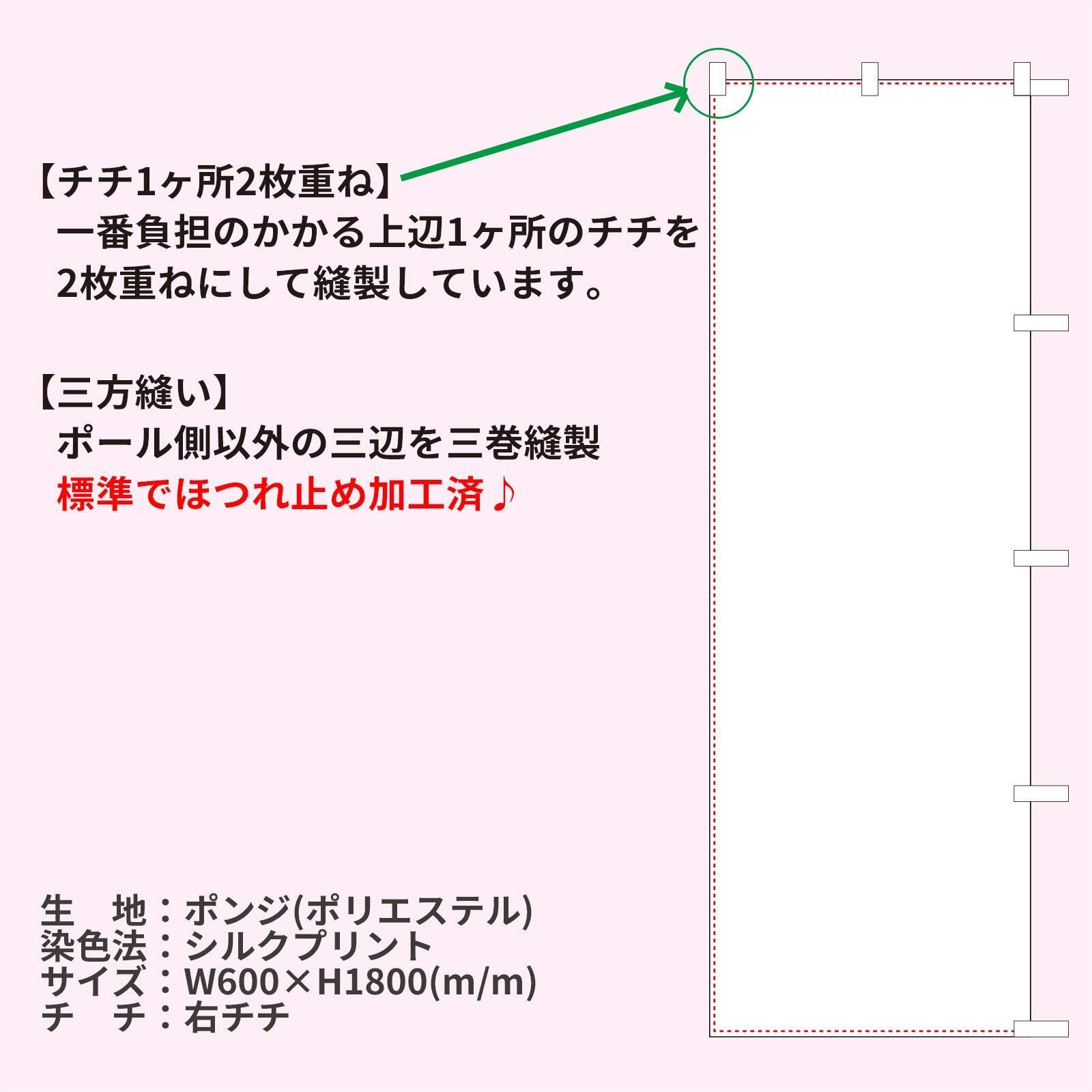 【サイズ】:W600mm×H1800mm (市中で見かける一般的なのぼり旗のサイズです)