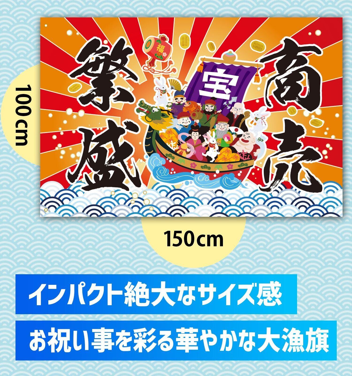【特価商品】大漁旗 鯛柄 100×150cm 商売繁盛 C(宝船) 1枚 宝船 壁飾り 縁起物 和風 お祝い 装飾用 インテリア NYANDELMO ND-0241-R18-C