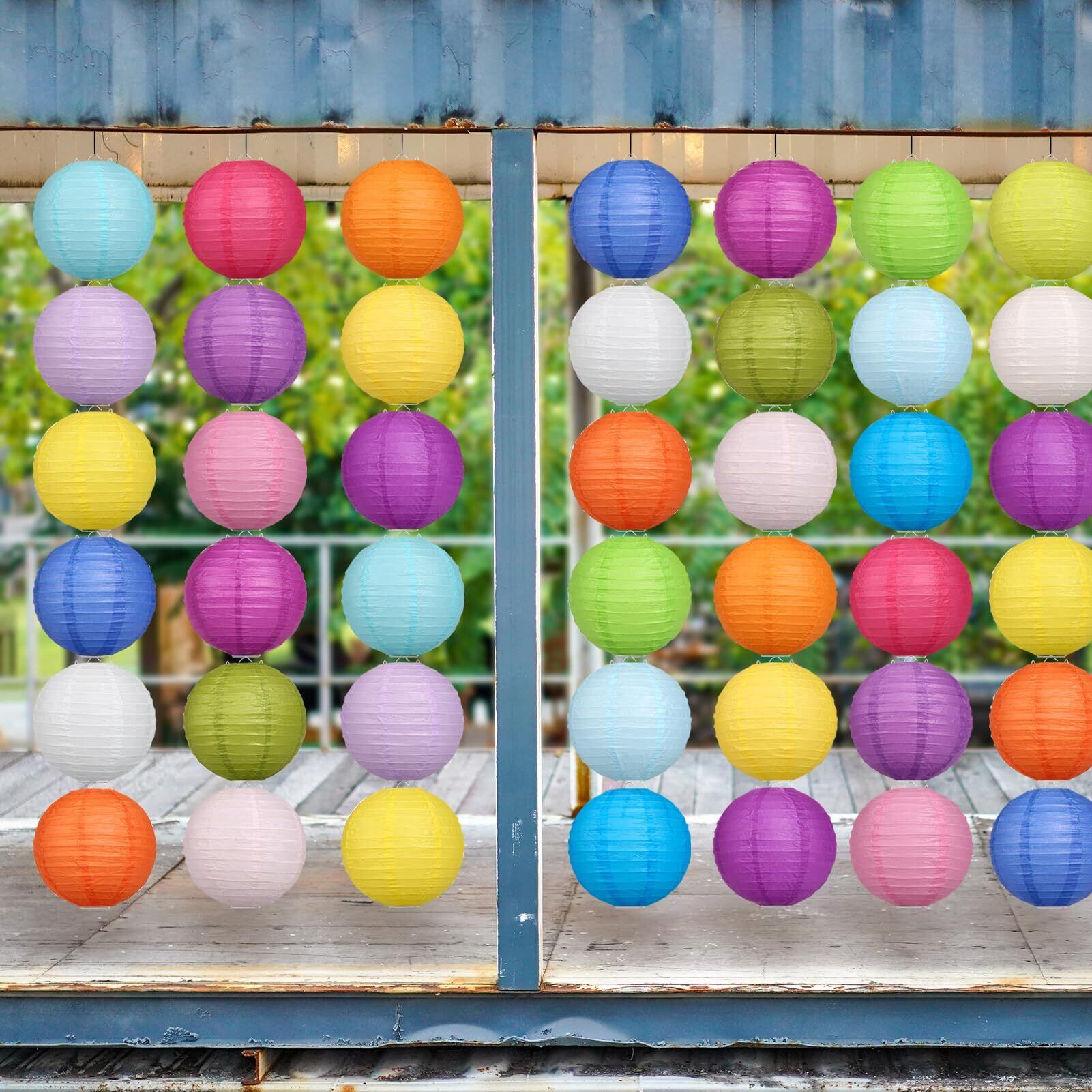 LIHAO 提灯 紙ちょうちん 20色入 20cm ランタン 丸型 無地 夏祭り お盆 祭り イベント パーティー 七夕 飾り デコレーション 装飾 ちょうちん 紙提灯 カラフル