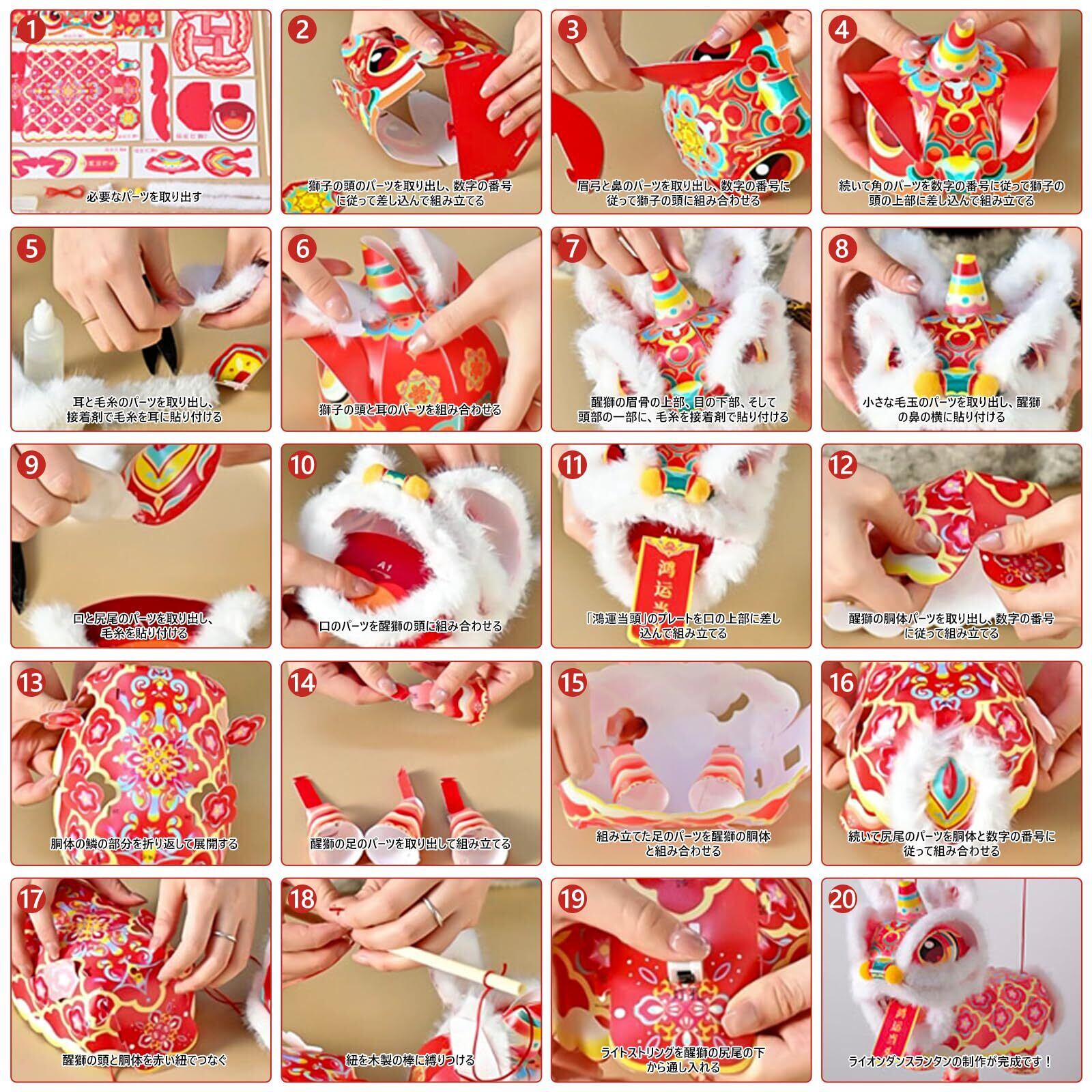 【子どもの成長を助ける】幸運のライオン提灯はご自分の手で組み立ることが必要です。少し時間がかかりますが、子供たちは組建てによって、子供たちの手と目の協調、集中力、思考力などを育てることができます。 这个醒獅提灯需要自己组装,虽然组装需要花费不少时间,但是小朋友通过自己的劳动来组装能提高她们的手眼协调能力和集中力,以及思考能力。