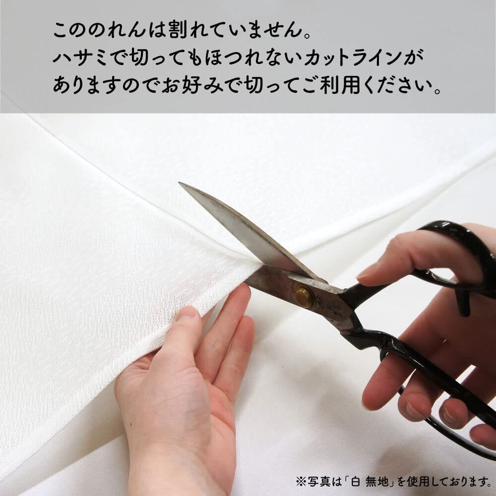 【仕様】割れ目のないのれんです。真ん中のカットラインに沿ってハサミで切り込みを入れることもできます。竿通し部分まで切らないようにご注意ください。直径約2.2cmまでのポール(棒)を通すことができます。(※つっぱり棒をご使用の場合は、両端のキャップの太さも考慮してください。キャップが取り外せるものもございます。) 向こう側が明るいと透けて見えます。(視線をさえぎりつつも、明るさを確保できます。)