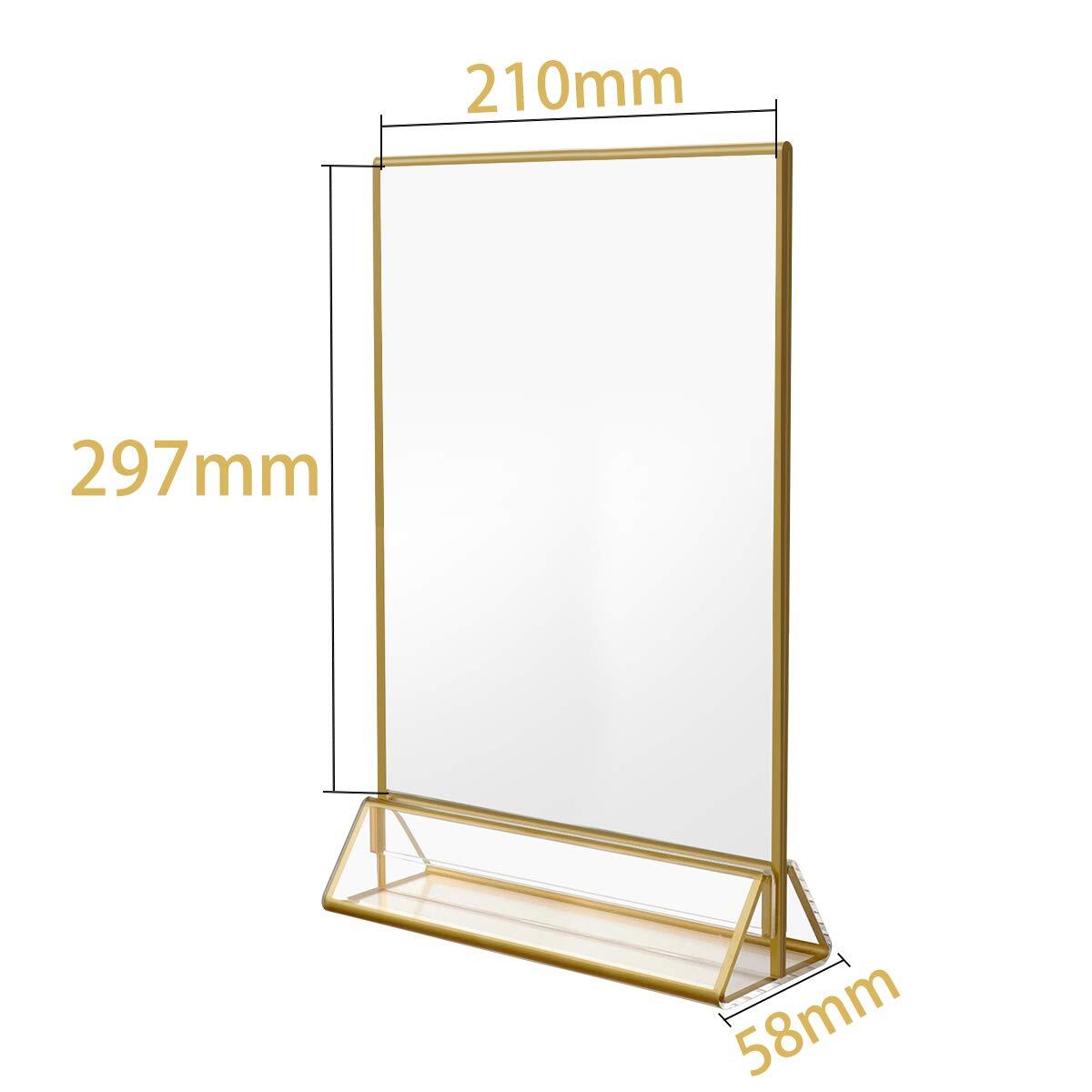 NIUBEE アクリル サインホルダー ゴールドフレーム 両面用 透明 縦置き【サイズ:A4判 6本セット】 垂直スタンド付き、結婚式のテーブル番号の表示、広告写真、カード立て、メニューディスプレイに最適 (ゴールド縁,210x297mm)