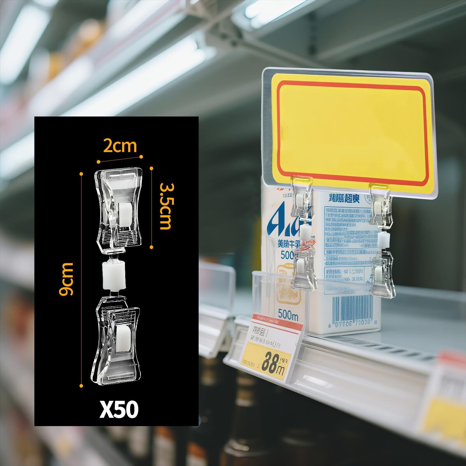 【360度回転】ポップクリップは両端が360°回転するため、高さや向きを自由に調整できます。商品展示、値札、案内板などの場所を簡単に設置でき、効果的に注意を引くことができます。