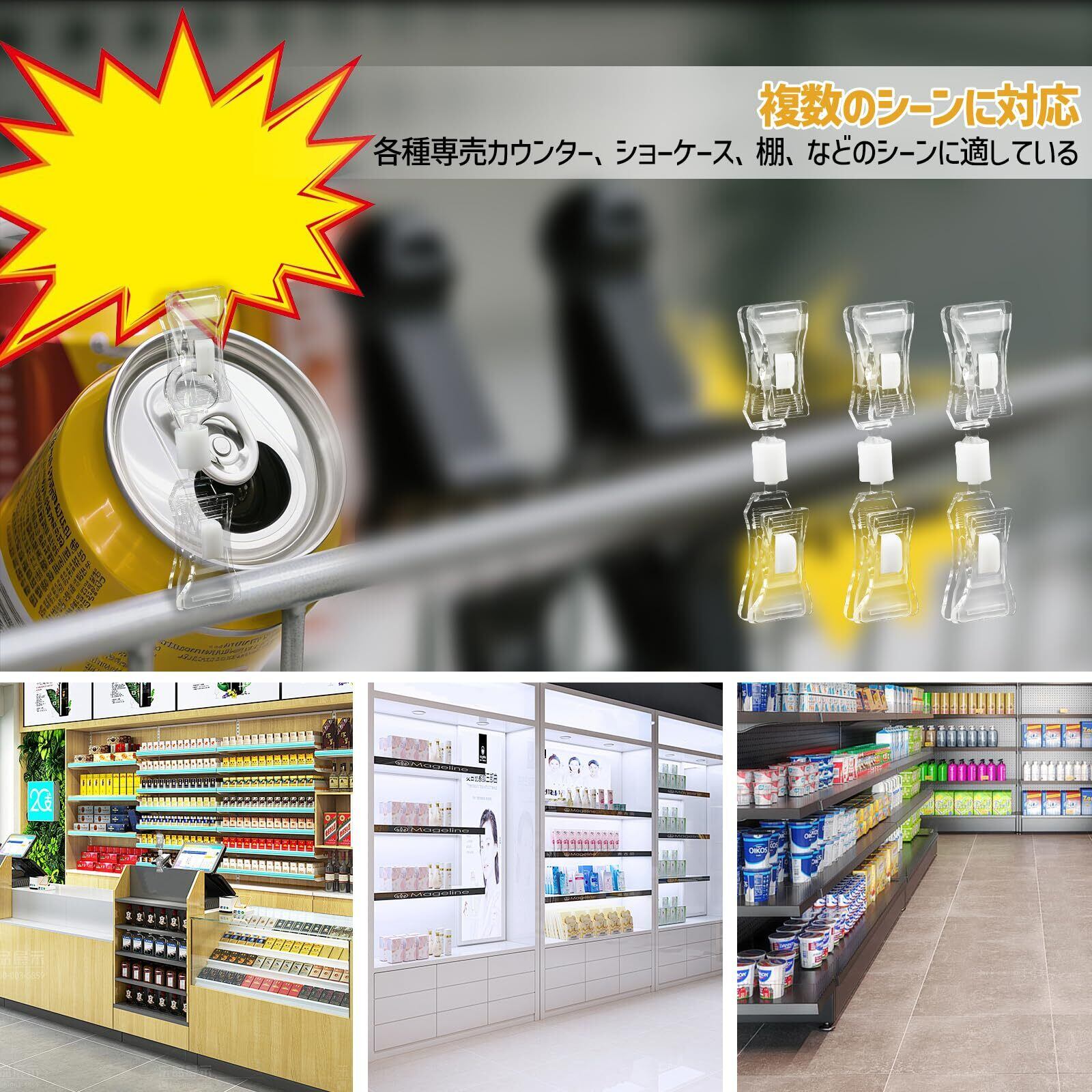 【幅広い用途】透明なデザインで、周囲の雰囲気を損なうことなく美しく見せることができます。また、スーパーや果物屋、衣料品店などでも使用できます。商品の近くに固定するだけで、目を引く広告表示を効果的に実現することができます。