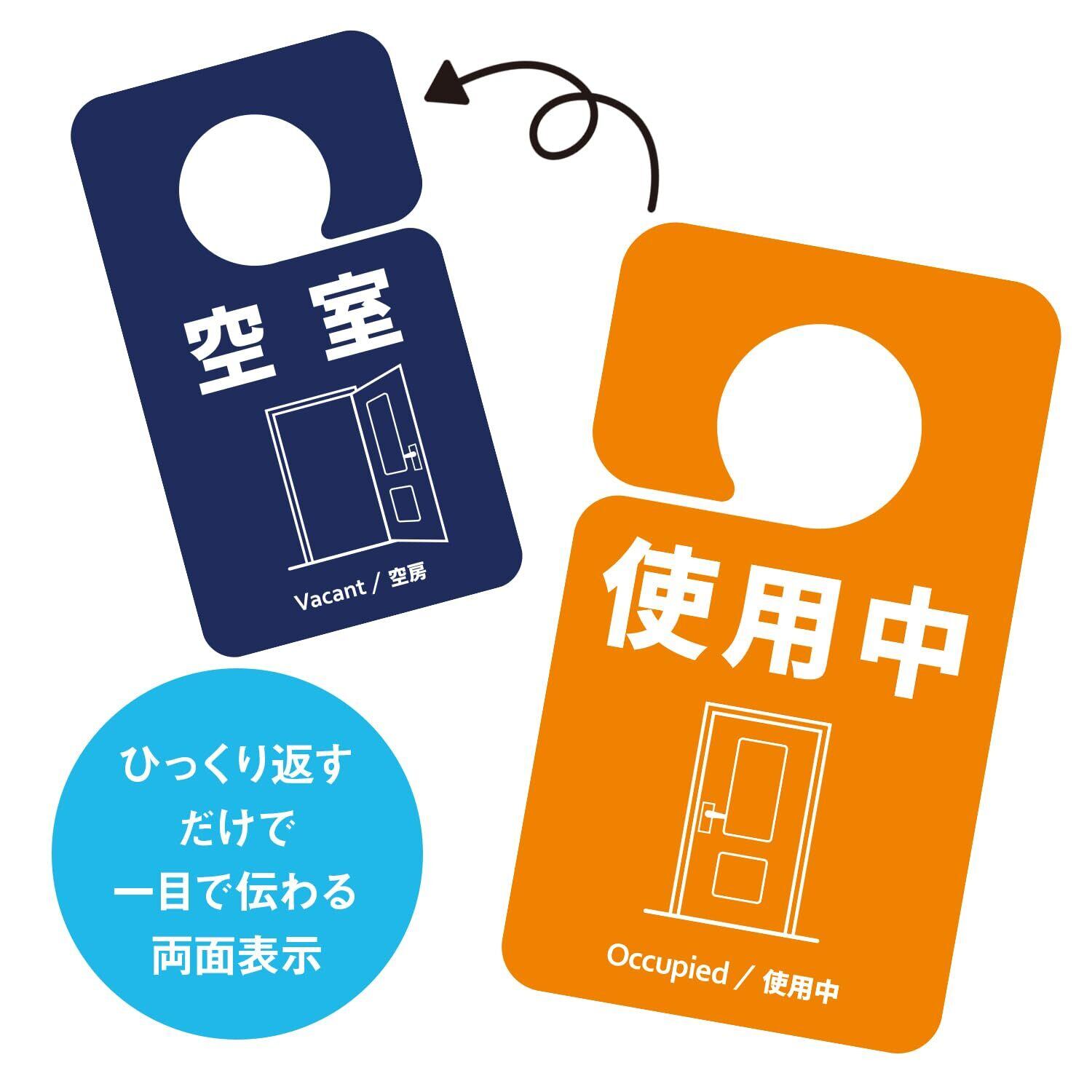 【一目で伝わる両面表示でプライバシーとマナーをサポート】「使用中」「空室」「会議中」などの状態をひっくり返すだけで即表示。日本語・英語・中国語表記で、来客・家族・スタッフにも直感的に伝わります。ノック不要で使用状況を共有でき、来客時や家族間のトラブル防止に役立つ実用的なドアサインです。