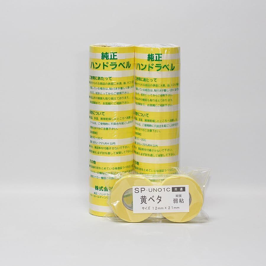 サト-純正のSP・UNO1C両ハンドラベラー用共通ラベル「黄ベタ」 (弱粘)10巻入り×2袋に、2巻が付いた合計22巻のお得なセットです。