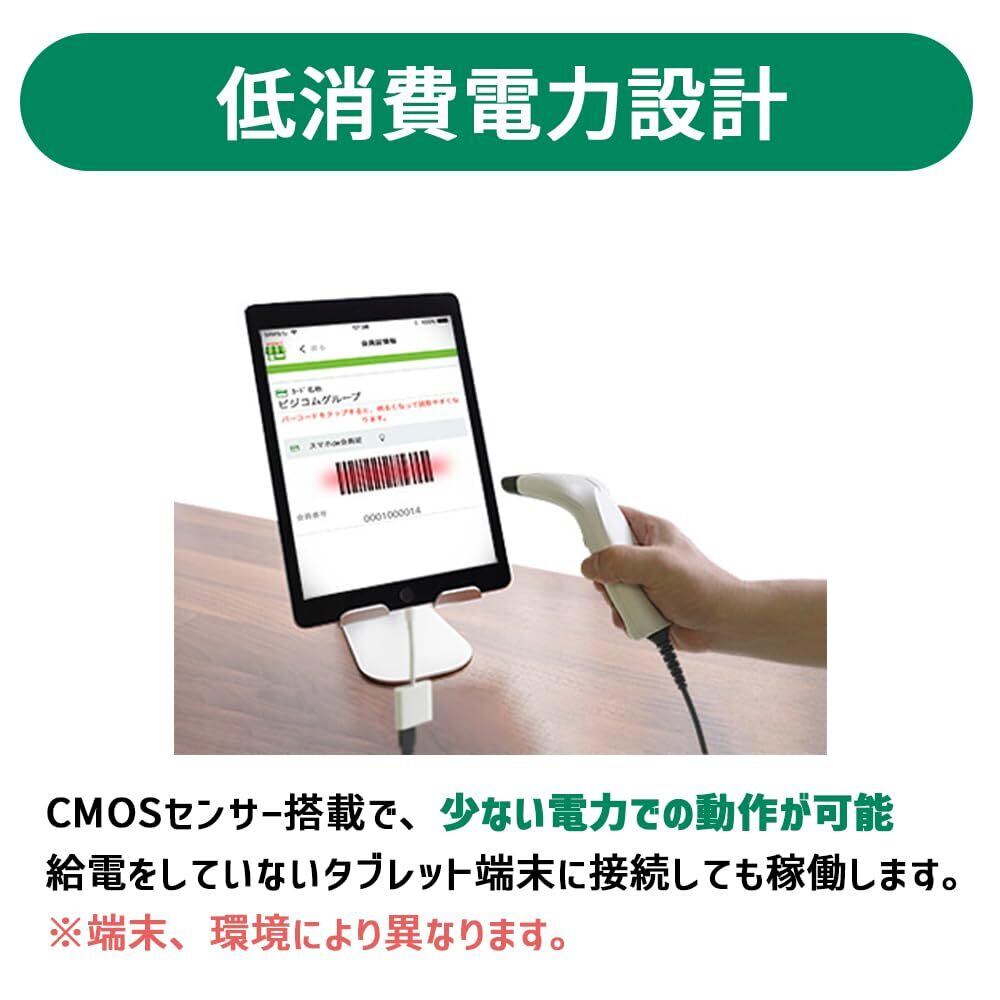 CMOSセンサーを搭載した省電力タイプのバーコードリーダー。