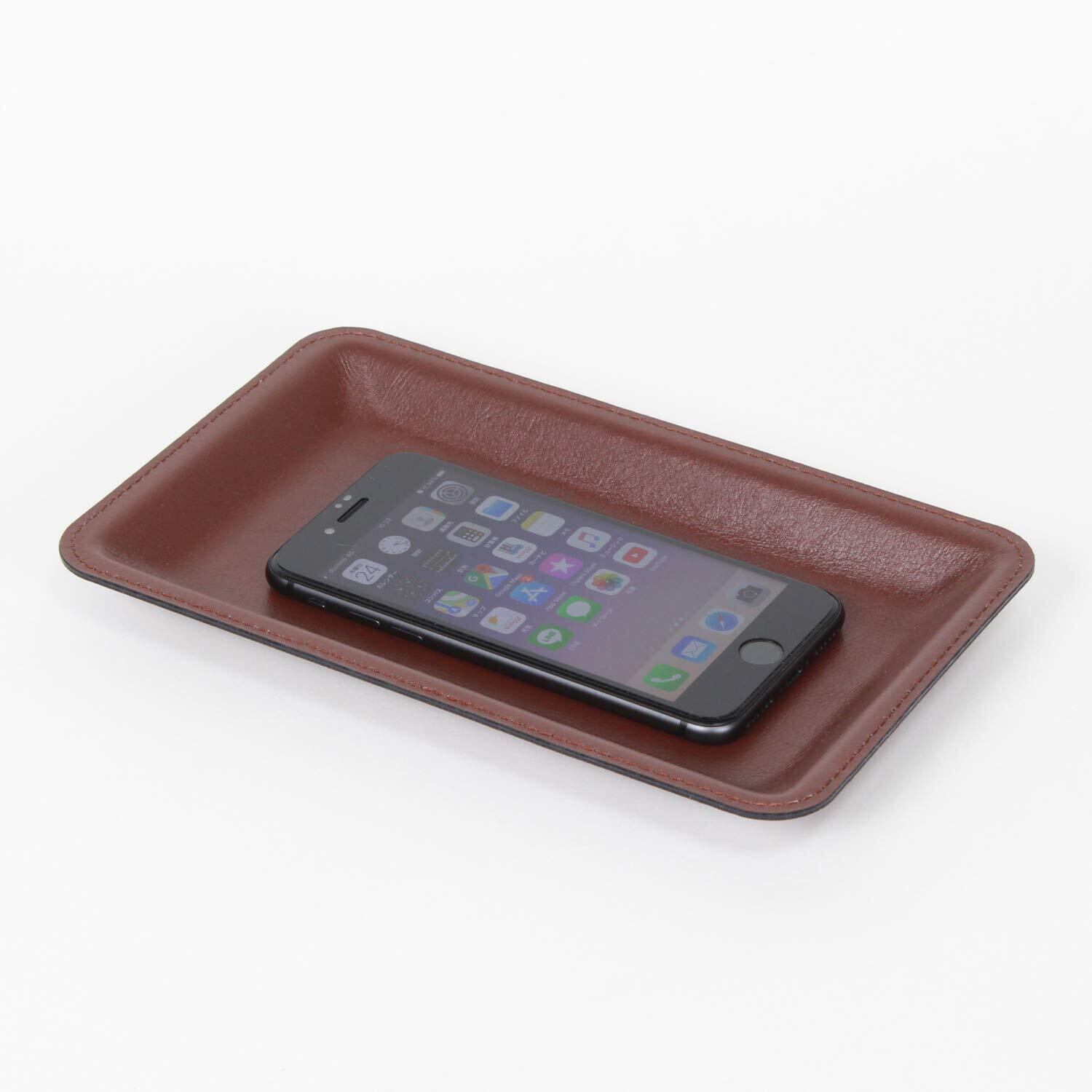 高級感があるレザータイプのカルトン。釣銭皿としてだけではなく、ペントレイ、アクセサリートレイとしても活躍しています。