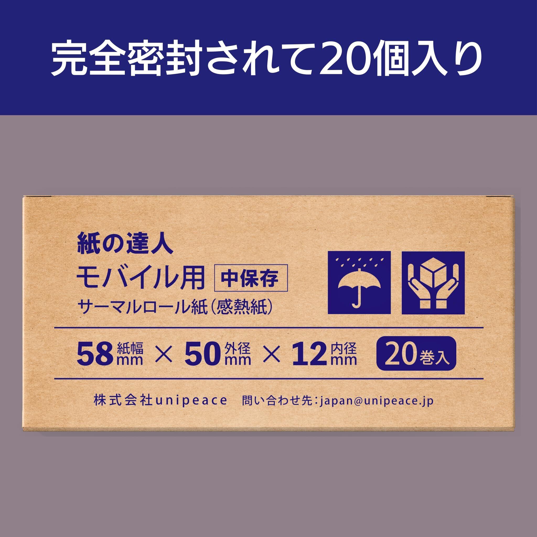 感熱紙 58mm (58×50×12mm) レジロール モバイルプリンタ対応 サーマルレシートロール 20巻入り