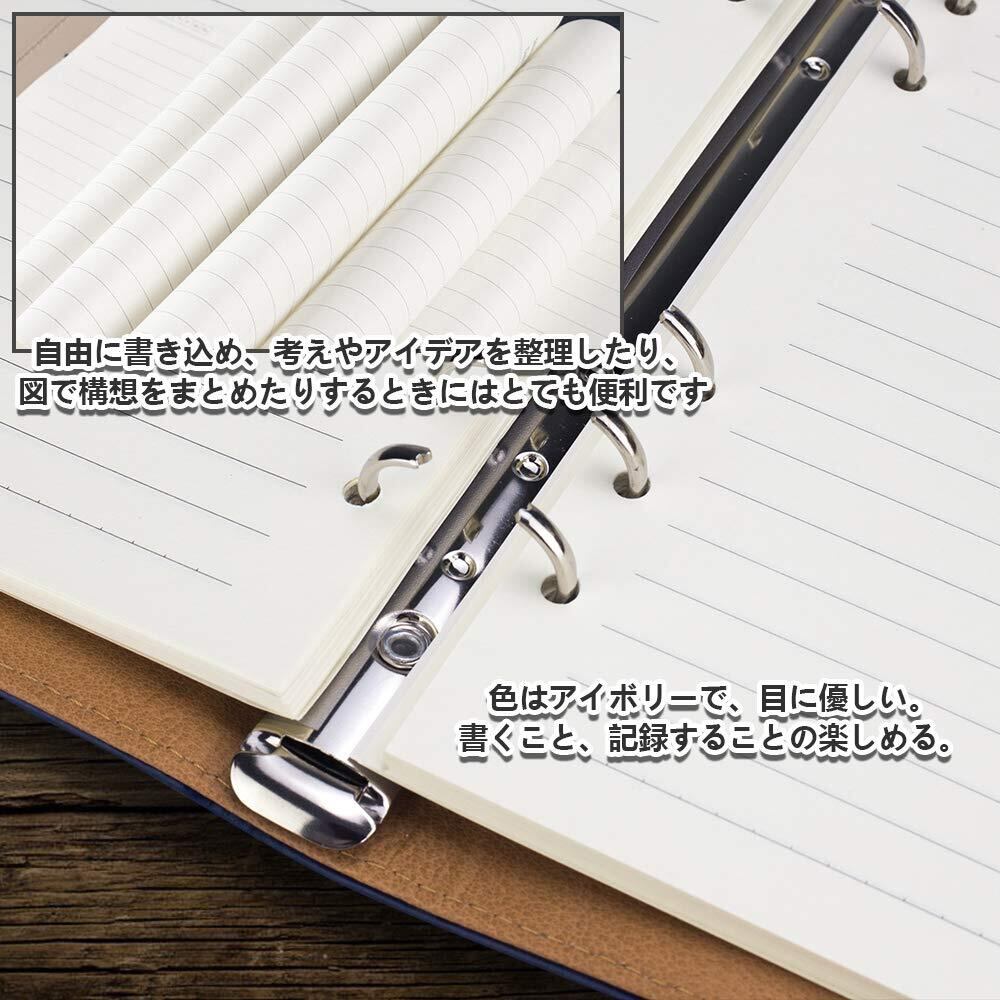 【細部をこだわり】リフィルリング6穴がありますので、誰でも簡単に装着できます(約90枚の用紙を収納可能です)。リングはしっかりして錆びにくいです。用紙数量の増減や用紙位置の調整が簡単に行えます。